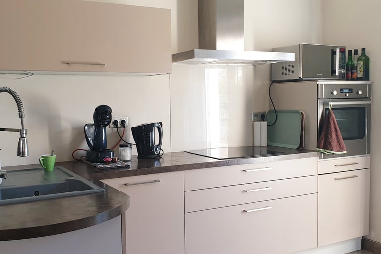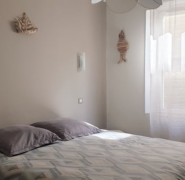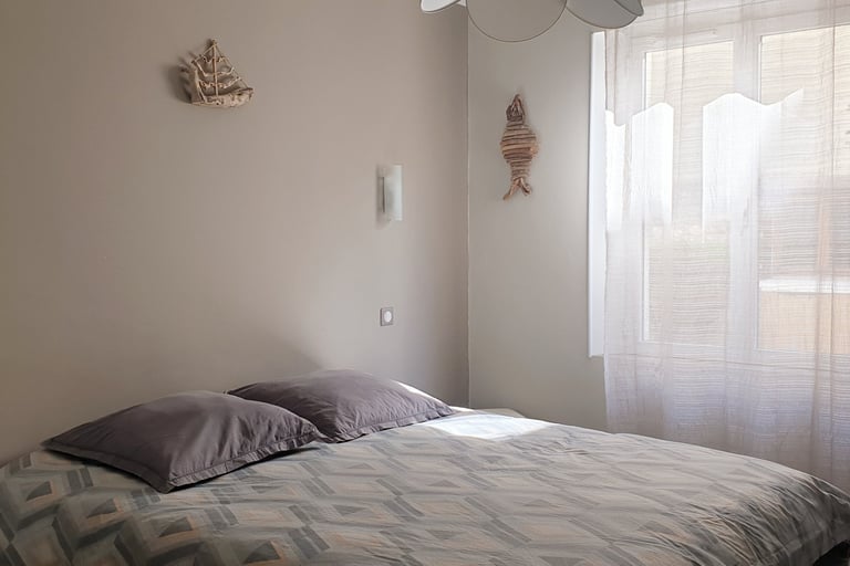 Notre 3 pièces cozy en rez de jardin, avec une baie vitrée donnant sur le jardin et la piscine, se compose d'un beau séjour avec cuisine ouvert, de 2 belles chambres avec lit en 160/200 séparable en 2 lits simple à la demande et d'une jolie salle de bain avec fenêtre.